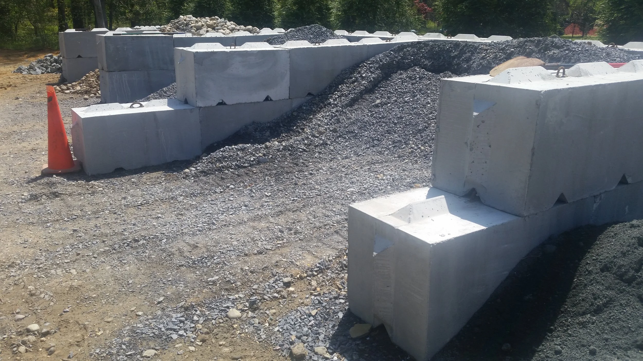 Useful for barriers and the storage of bulk materials. Our high-strength bin blocks are made with fresh high strength concrete (not recycled) and reinforced with structural fibers. We manufacture three foot, four foot, and six foot blocks. We also manufacture corner blocks. Bins go up quickly using the V-Lock technology of these blocks.